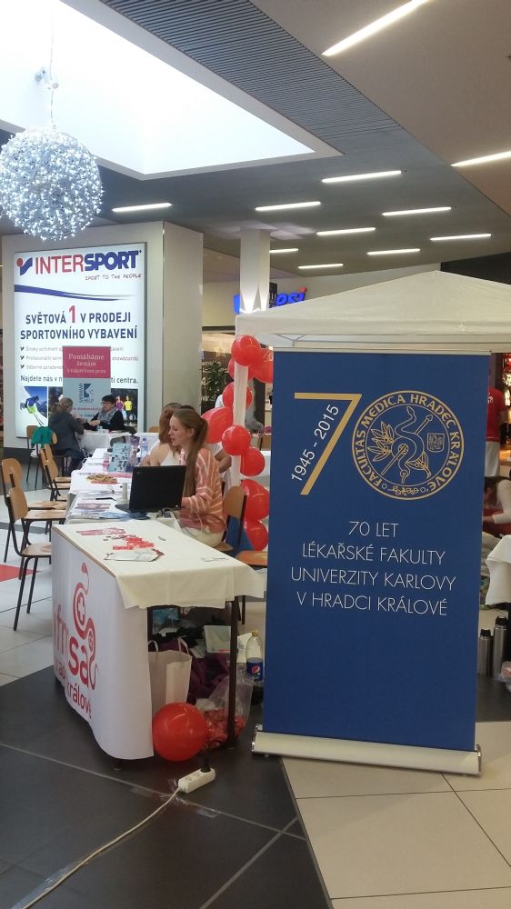 Organizace studentů medicíny v Hradci Králové nás pozvala k účasti na oslavách a prezentaci 70 let trvání Lékařské fakulty Univerzity Karlovy v našem městě, která proběhla 19. 11. 2015 v nákupním centru Futurum v Hradci Králové. Hned vedle našeho edukačního stolku poskytovali informace o karcinomu varlat a o prevenci tohoto onemocnění studenti medicíny. Kromě toho, že jsme si udělali společné foto, vyměnili jsme si navzájem informace i několik zájemců o danou problematiku. Mezi vysokoškoláky je to vždy příjemně strávený čas.