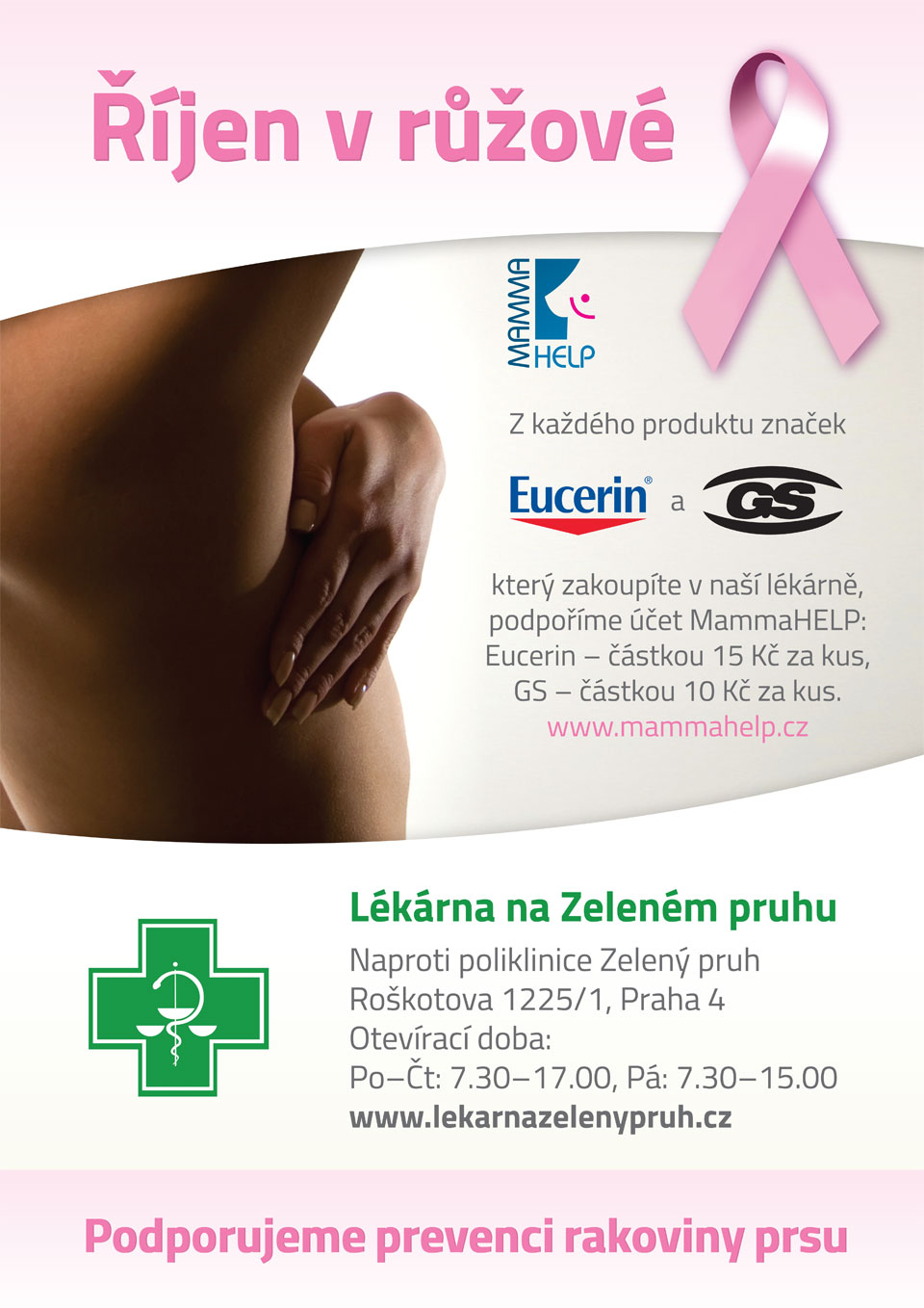 Z každého produktu značek Eucerin a GS, který zakoupíte v lékárně Na Zeleném pruhu, podpoříte Mamma HELP. Děkujeme.